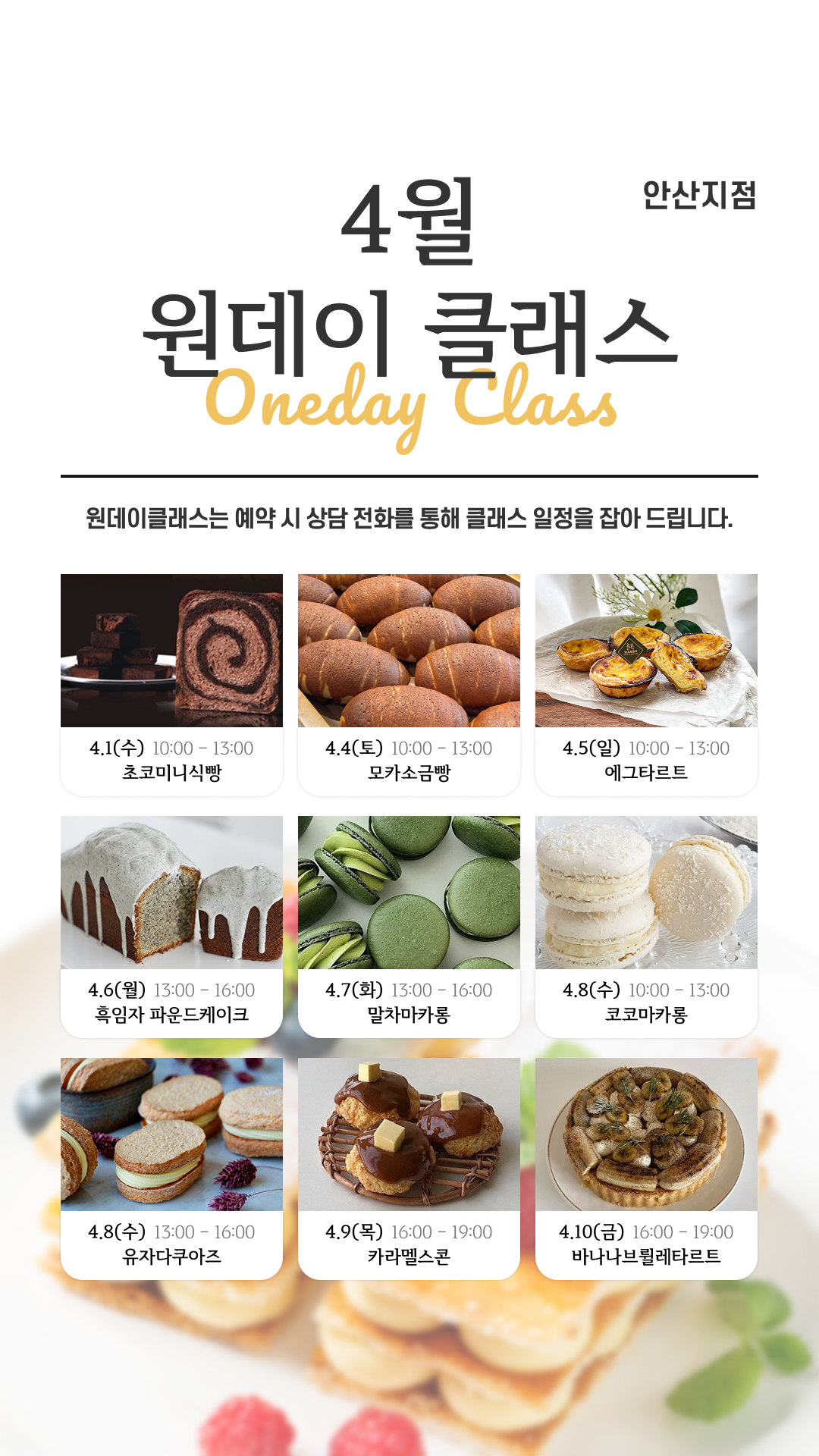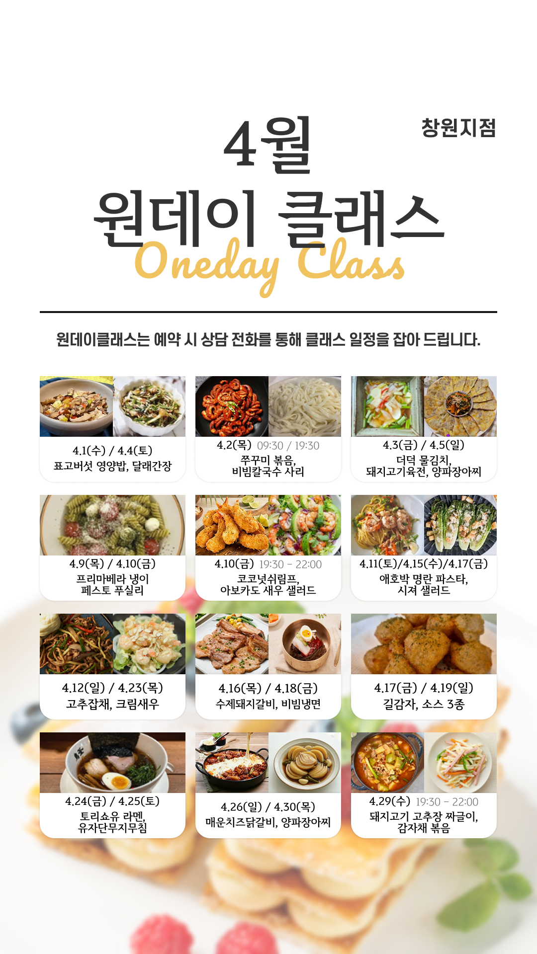 4월 지점별 원데이 클래스