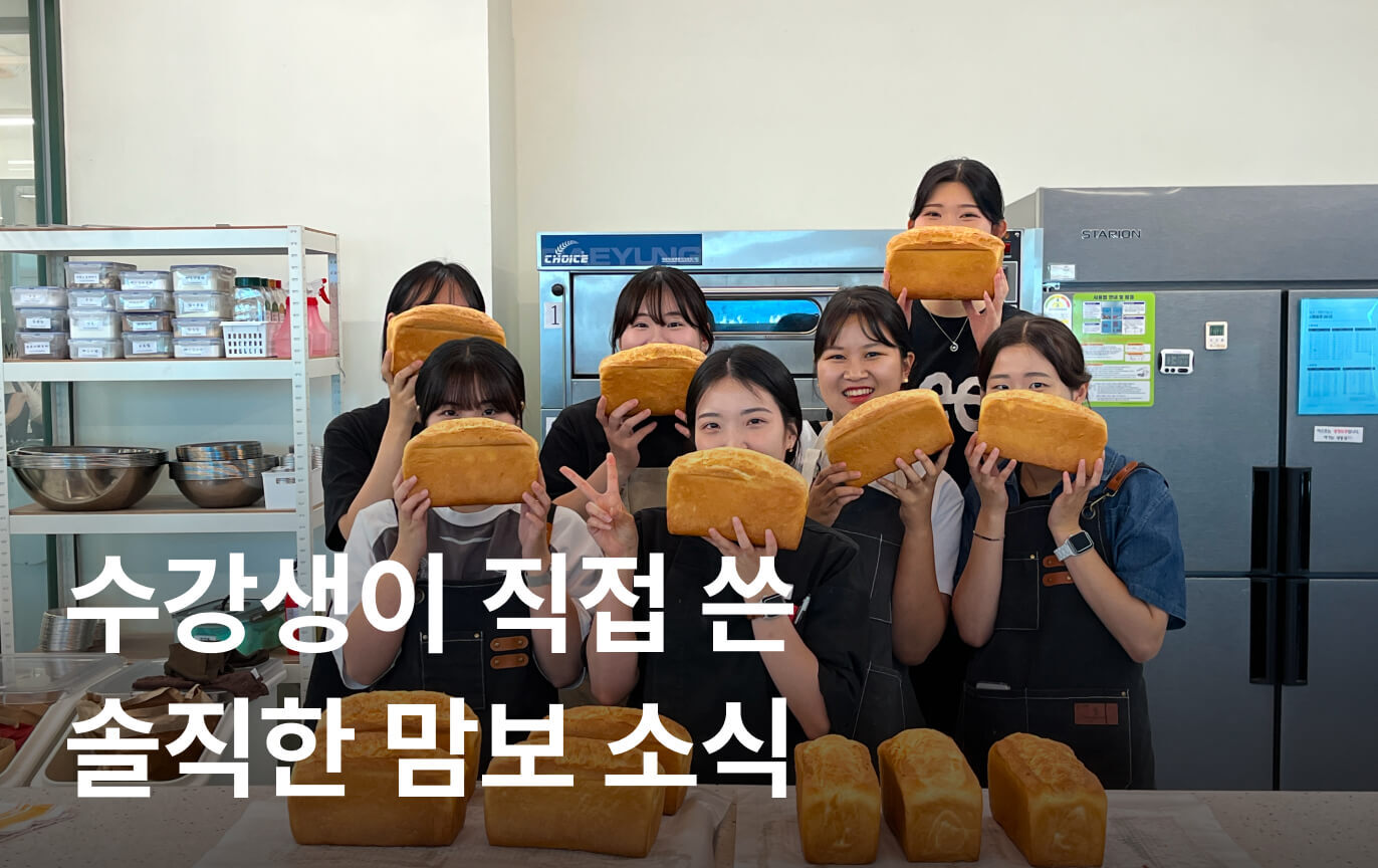 안산지점 오은지강사님께 늘 재밌는 수업들으면서 맛있는빵 만들어가요 강사님 덕분에 실기시험 한번에 붙을까봐 걱정되요 ^^